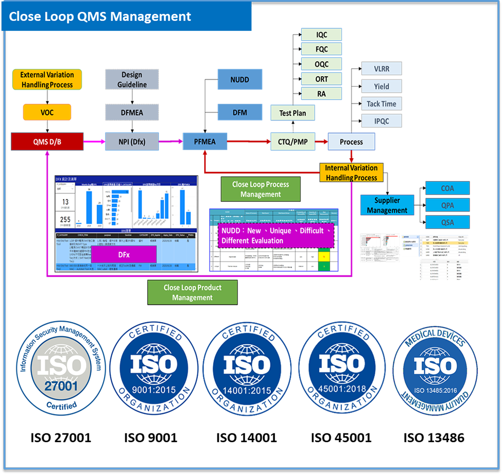 We have close loop QMS management system. Product quality is carefully taken into evaluation from the design stage, detail test and verification plan ensure the fulfillment of specification, reliability, and manafucturability. With comprehensive production quality management system, quality of each components, each production lot is guaranteed.
